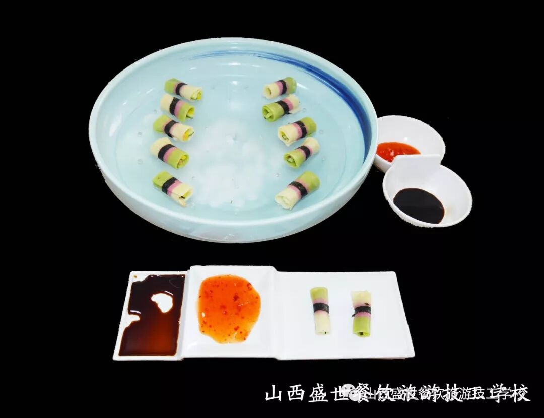 参赛的产品须是结合社会,有新观念、新服务,新时代、新需求的新产品,为此,校领导承着“传承不守旧,创新不忘本”的理念给徒弟们设计产品。从作品创意、食材选择、烹饪方法和工艺流程、器皿及产品造型等方面进行多次商讨。