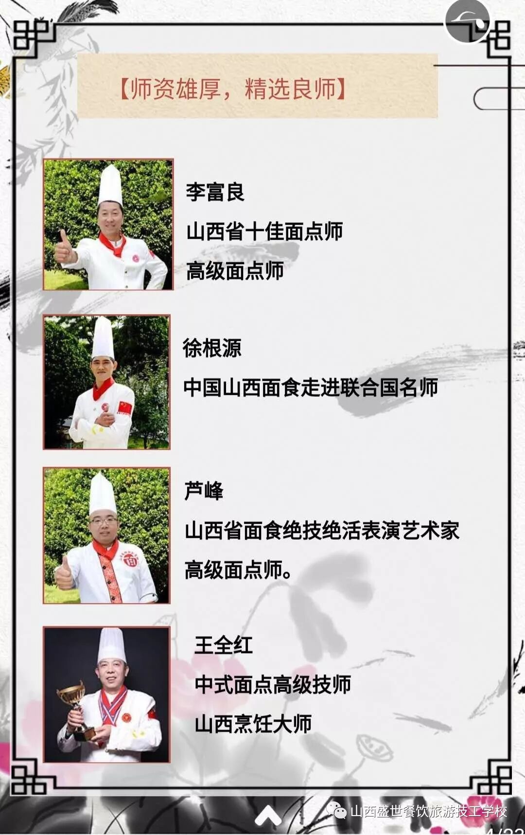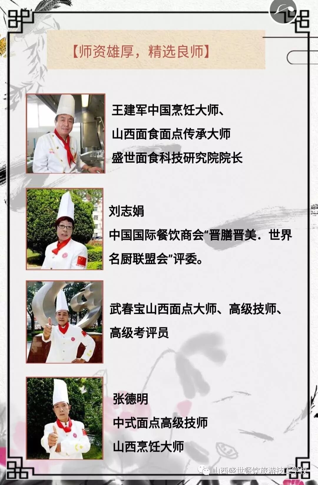 8名山西省面点大师,4名德育教师,