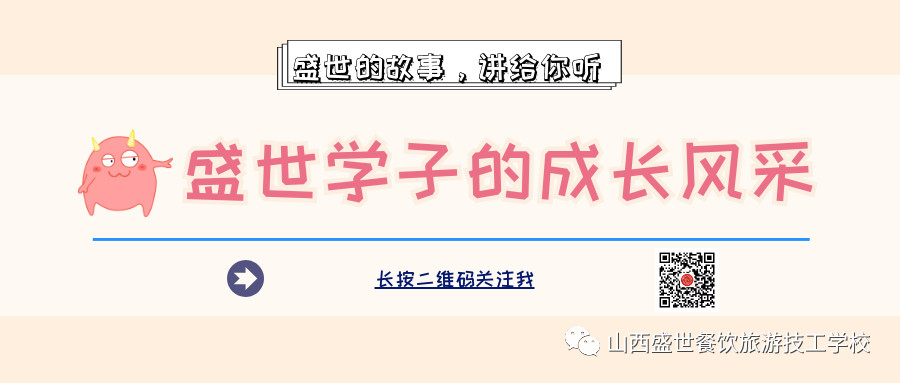 学生感言:是盛世学校给予我知识与技能。我很庆幸我当初的选择,这条路我会好好地走下去,在厨师行业里实现了自己的价值。我可以,你们也行,加油!