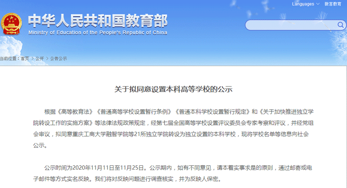 近日,教育部发布《关于拟同意设置本科高等学校的公示》,拟同意将21所独立学院转设为独立设置的本科学校,其中将景德镇陶瓷大学科技艺术学院和山西大学商务学院2所院校转设为本科层次职业院校。